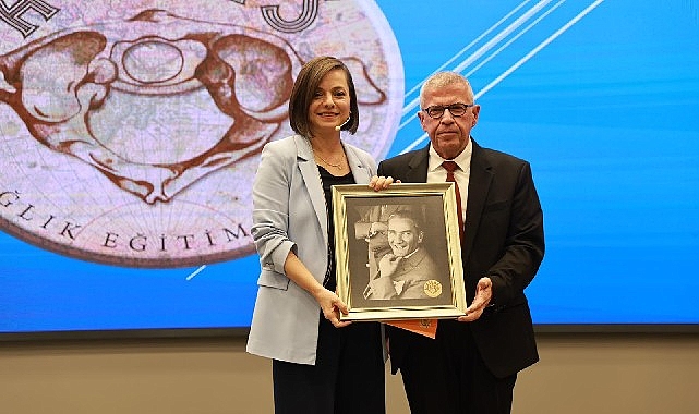 Konuşmanın sonunda Atlas Sağlık Eğitim Vakfı Yönetim Kurulu Başkanı Mustafa Apak, Başkan Kınay’a günün anısına Atatürk fotoğrafı takdim etti.