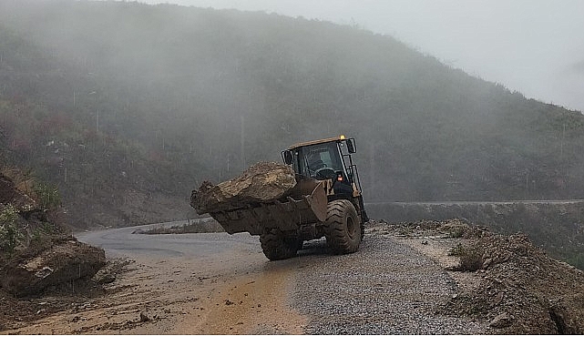 Antalya Büyükşehir Belediyesi ekipleri, olumsuz hava şartlarının etkisini sürdürdüğü Alanya kırsalında yolları açık tutmak için aralıksız çalışıyor.